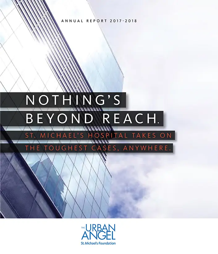 Founded by the Sisters of St. Joseph in 1892, St. Michael’s Hospital—now part of the Unity Health Toronto network—has a storied legacy of compassionate care. To honour its roots, we are incorporating Unity Health’s signature wing symbol—representing both an angel and a dove—as a tribute to the Sisters’ founding mission of caring for all. The vertical elements in the design symbolize potential and growth, reflecting our ongoing commitment to progress and hope.